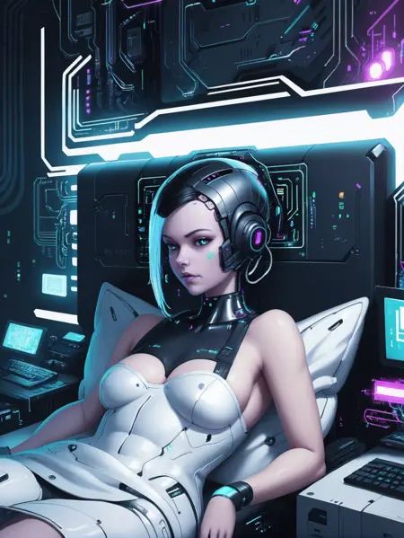This LECO (trigger word "cyber") adds cybernetics to all of your generations. It's tuned so that locations and architecture work well with the weight set to 1. For people and animals, set it to 1.5 or 2.0 depending on how dramatic you want the effect to be.