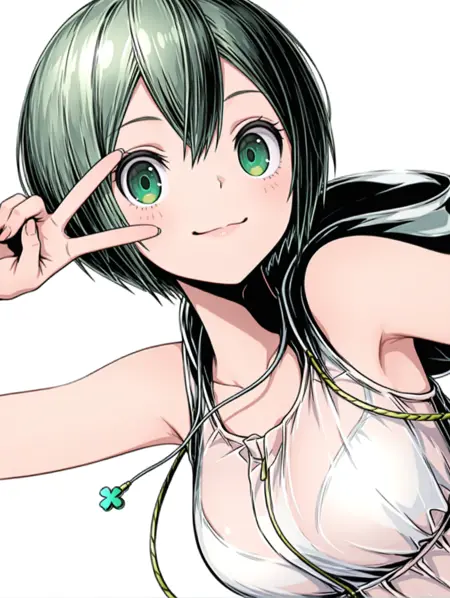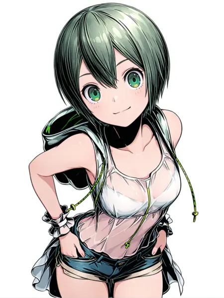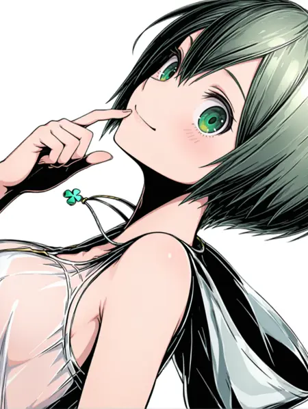 トリガーワード ・d_midori,green hair,short hair,green eyes,