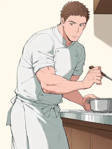 川渕仙太郎、1男、男性中心、筋肉質、粗野、一人、茶色の目、たれ目、茶髪、短髪、右頬の傷、バラ、
