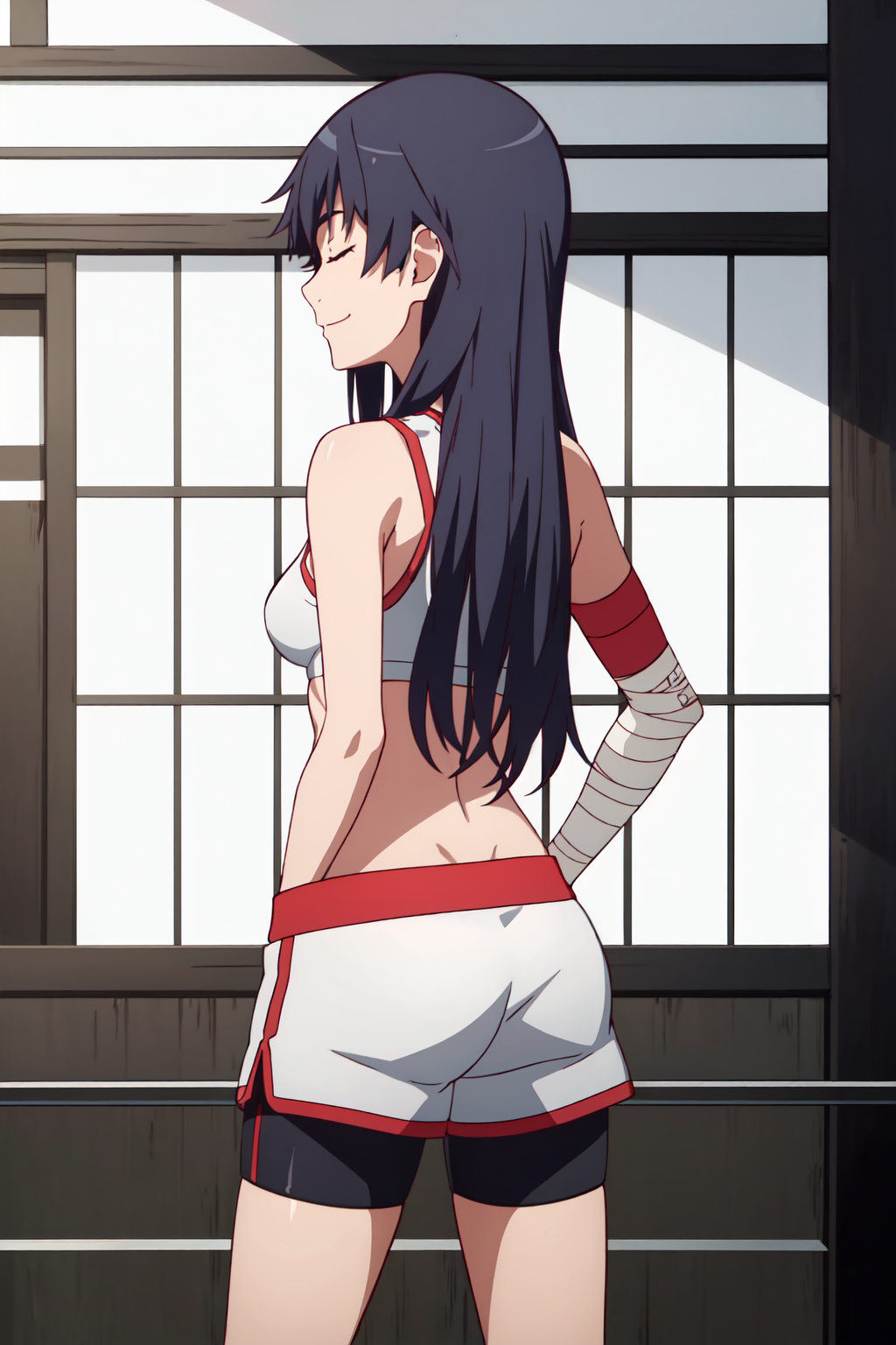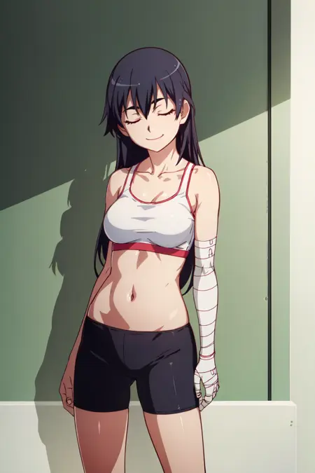 鞋子、运动鞋、骑行短裤、缠绷带的手臂、裸露的肩膀、运动服