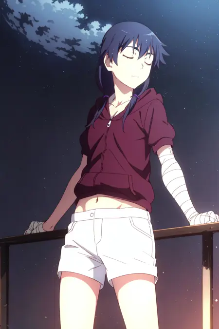 连帽衫、缠绷带的手臂、夹克、短裤、帽子放下、短袖、拉链、发带