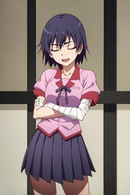 直江津高中校服、骑行短裤、裙子、缠绷带的手臂、百褶裙、丝带、衬衫