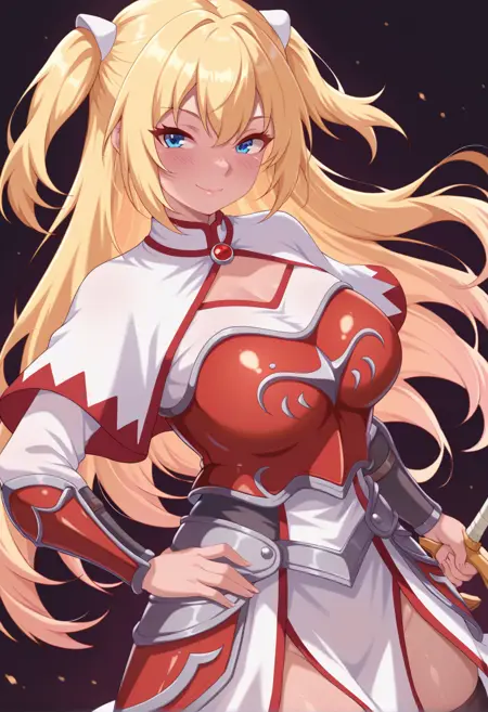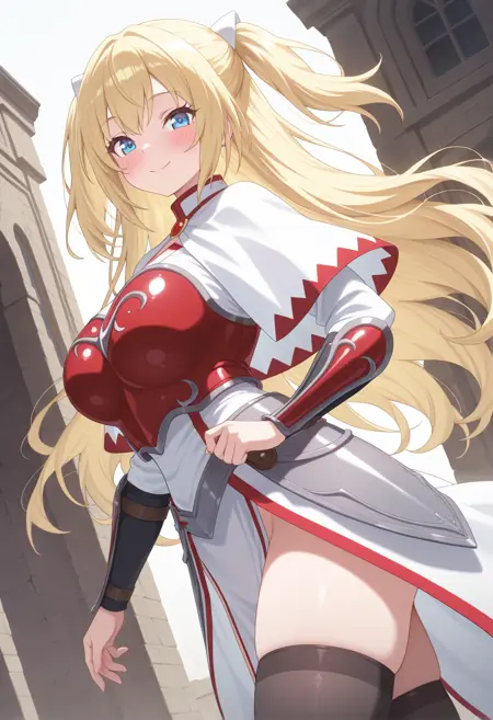 外見: luviliasochimono、大きな胸、青い目、金髪、両サイドを上げたロングヘア