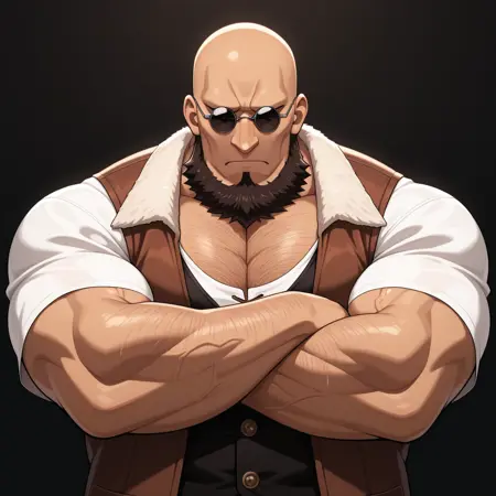 デフォルトの外見: サングラス、丸眼鏡、紫の手袋、ズボン、シャツ、ベスト、目隠し、空虚な目