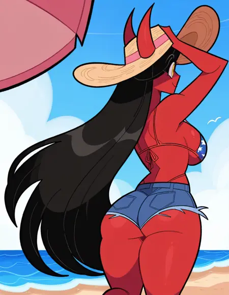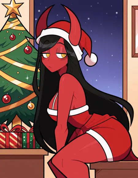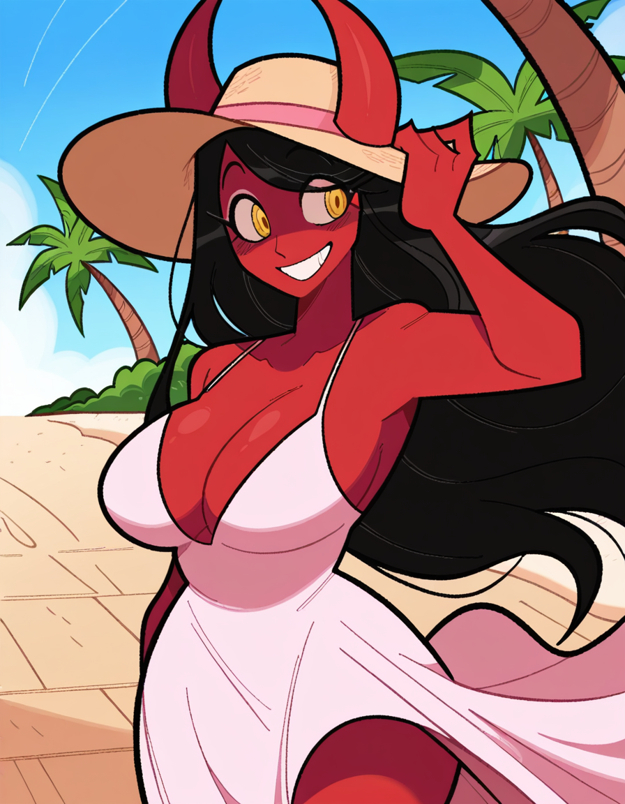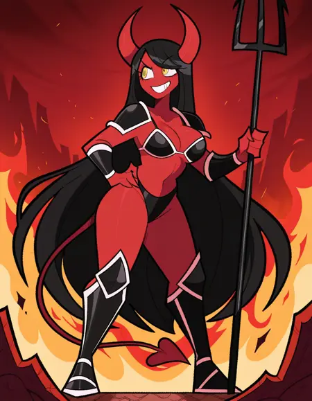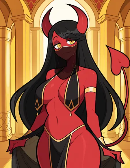 トリガー語: lili_(idolomantises)、黄色い目、黒髪、非常に長い髪、サイドに流した前髪、赤い肌、悪魔の少女、悪魔の角