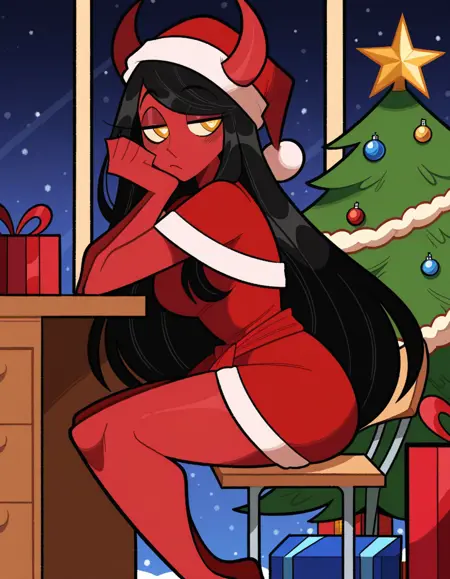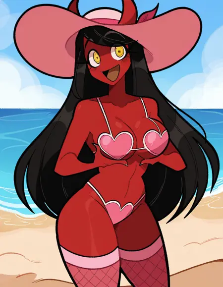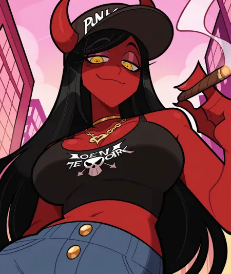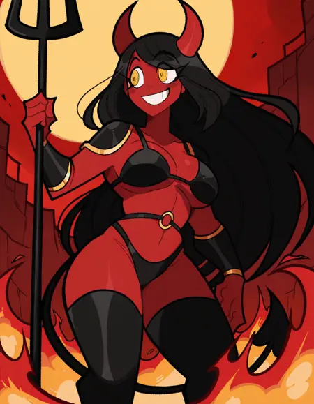 トリガー語: lili_(idolomantises)、黄色い目、黒髪、非常に長い髪、サイドに流した前髪、赤い肌、悪魔の少女、悪魔の角