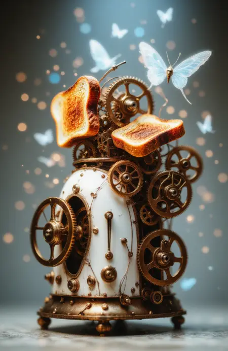 もう少しランダムに浮かぶオブジェクト、予測不可能な被写界深度、きらきらしたボケ効果が必要だった。今のところAIに割ける時間はあまりないので、自由な時間にさまざまなコンセプトや理論を試している。GPTが私の設定をバカみたいに壊すのを許している。