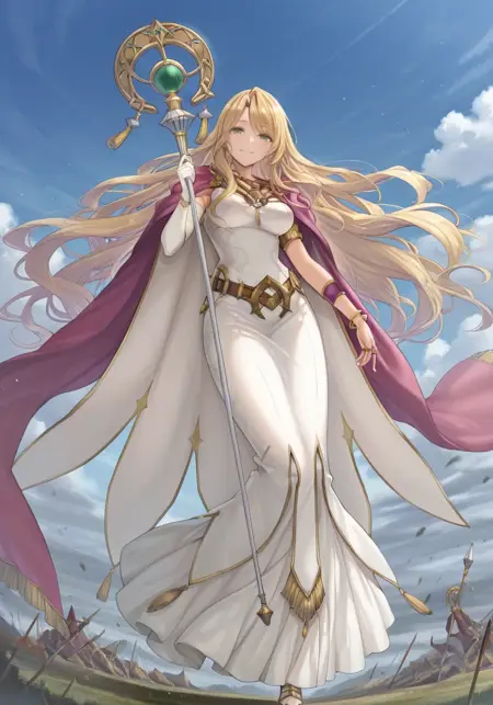 デフォルト: ドレス、マント、不対称の手袋、肘まである手袋、ブレスレット、ジュエリー、杖、サンダル
