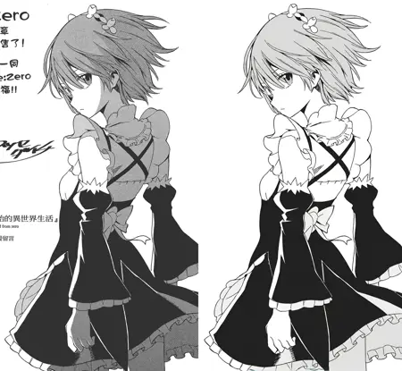 このモデルの効果は、漫画画像から网点と阴影を除去し、画像をより清潔で明瞭にすることです。これはアニメーション制作や色塗りに便利です。