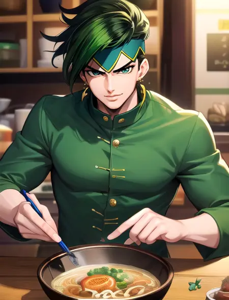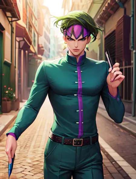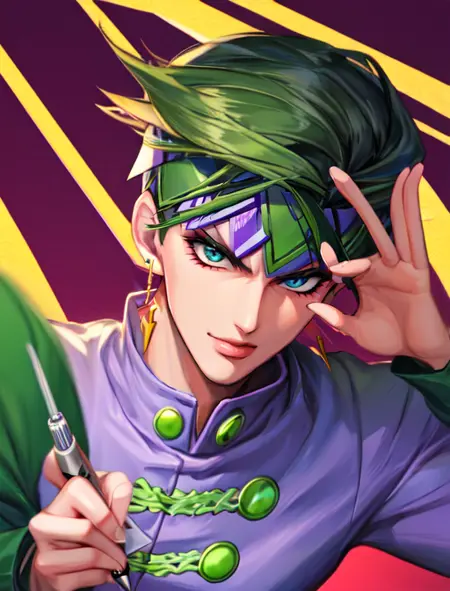 我最喜爱的《JoJo的奇妙冒险》第四部角色!生成效果还不错,但由于训练中Rohan的服装变体较多,结果并不完全一致,有时头发也会出错。