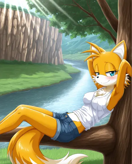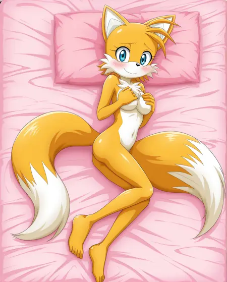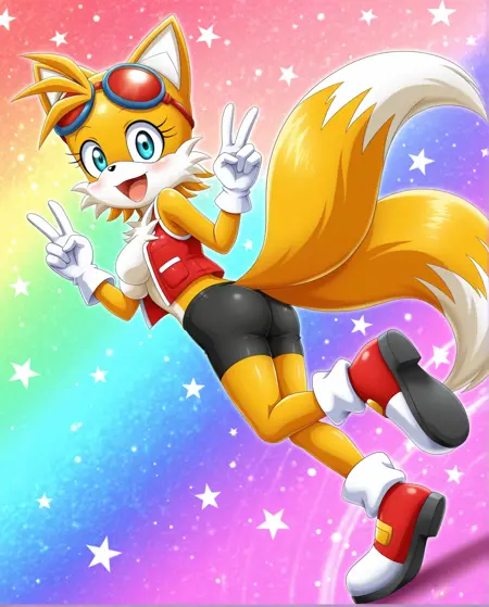 태그: tails_the_foxMU, 솔로, 1girl, 퓨리, 페미일, 여우, 노랑 털, 하얀 털, 이색 털, 파란 눈, 두 개의 꼬리, 흰 끝 꼬리, 검은 코, 가슴 털, 5개의 손가락, 날씬한