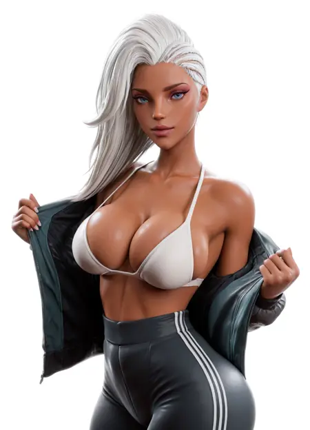 storm112、青い目、長い髪、白い髪、暗い肌、暗い肌の女性、非常に暗い肌、化粧、イヤリング,