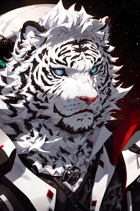 可以给更多tag:1boy,muscular,muscular_male,furry_male,male_focus,animal_ears,facial_hair,chest_hair,white_fur,scar,furry......