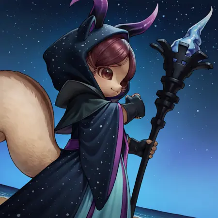 RorotataCS, 앤트로, 여성, 체르키, 키작음, 갈색 털, 할로윈 옷, 단발, 갈색 머리, 갈색 눈, 후드 달린 망토, 후드 올림, 손가락 없는 장갑,