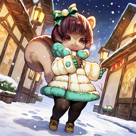 RorotataCS, 앤트로, 여성, 체르키, 키작음, 갈색 털, 신년 옷, 단발, 갈색 머리, 갈색 눈, 머리 리본, 겨울 코트, 팬티스타킹, 신발,