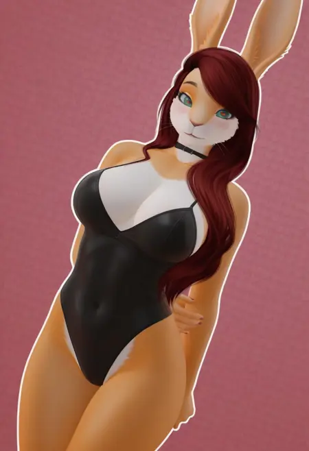 (1girl, bunny girl,(green-eyed), (red hair,long hair), orange furr, white furr,3d, female bunny,anthro furry,ears up,anthro furry,female,bunny,fur,bunny tail)