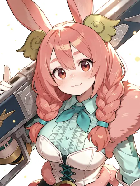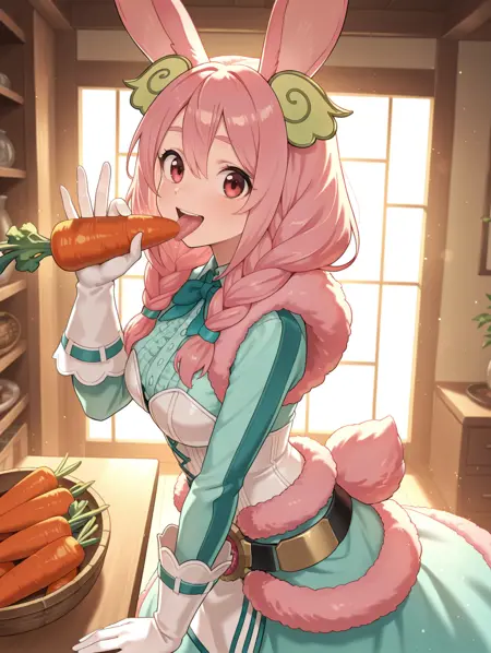 태그(옷): 분홍색 털 트림, 흰색 팬티스타킹, 뺨색, 머리 장식, 에이쿠아 리본, 에이쿠아 드레스, 에이쿠아 셔츠, 흰색 장갑, 흰색 코르셋, 분홍색 벨트, 흰색 무릎 부츠,