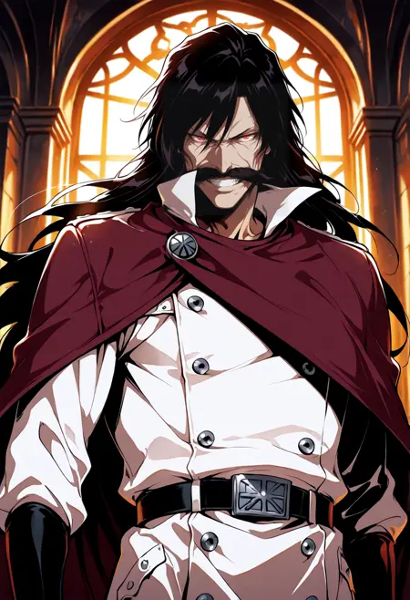 yhwachxl1111_illustrious, yhwach, 검은 머리, 긴 머리, 붉은 눈, 근육질, 노인, 함몰된 볼, 두꺼운 수염,