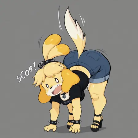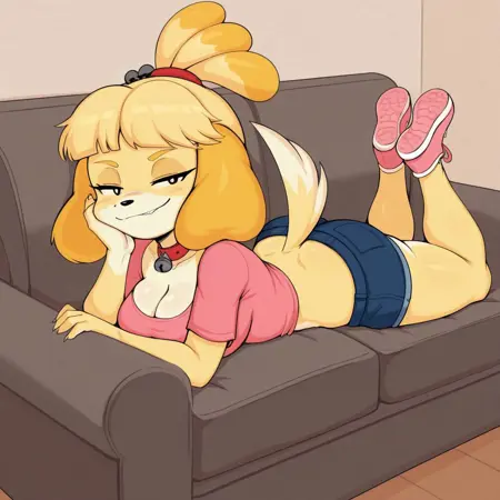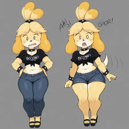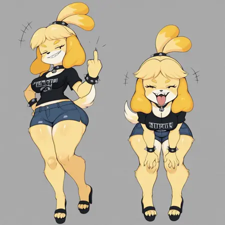 이것은 애니멀 크로싱의 이자벨을 보라색 요시 드로잉 스타일로 그린 것으로, 그녀의 공개 이미지를 사용해 학습되었습니다.