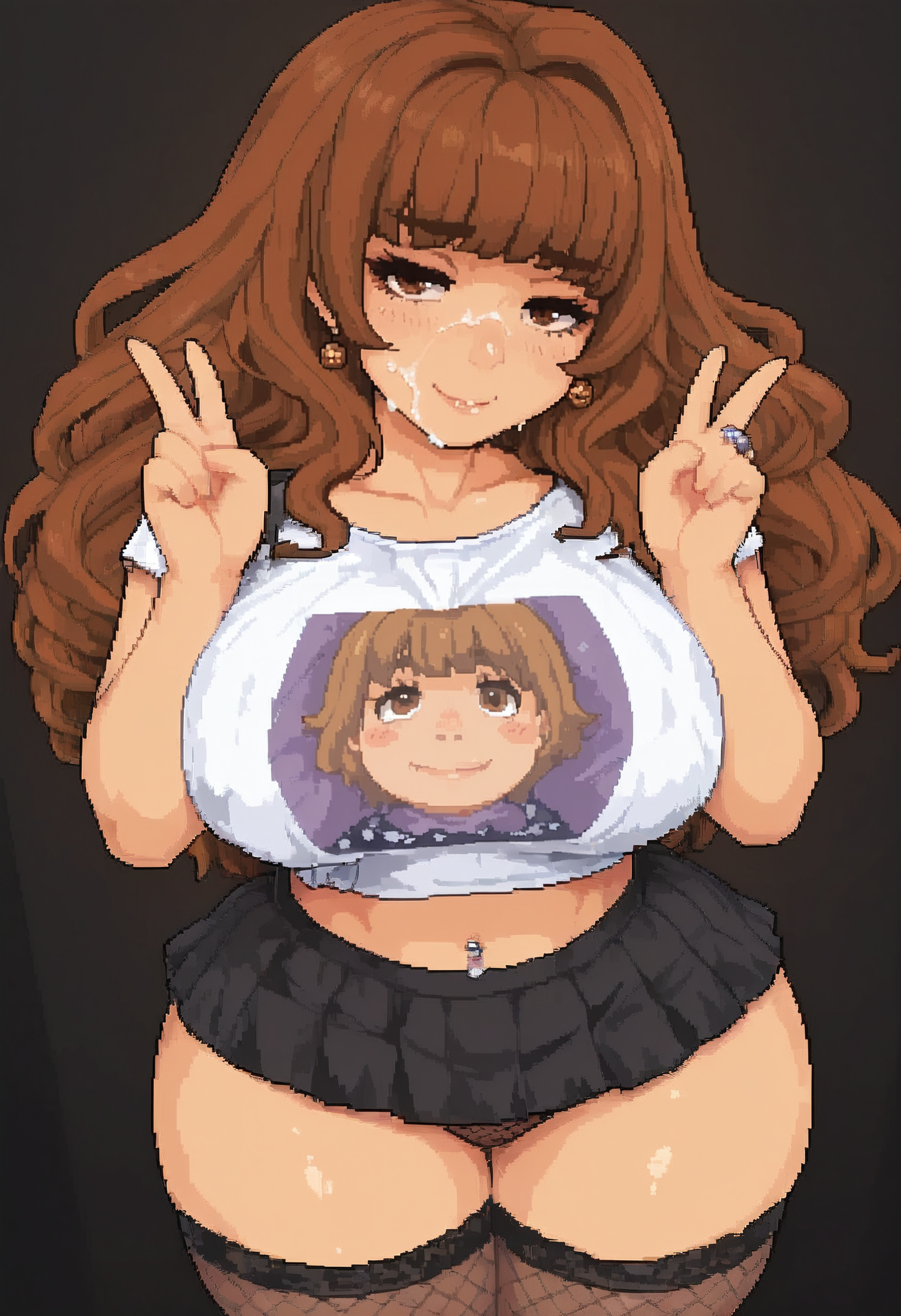 サンプルプロンプト: Paila 1girl, solo, long hair, breasts, bangs, large breasts, brown hair, brown eyes,