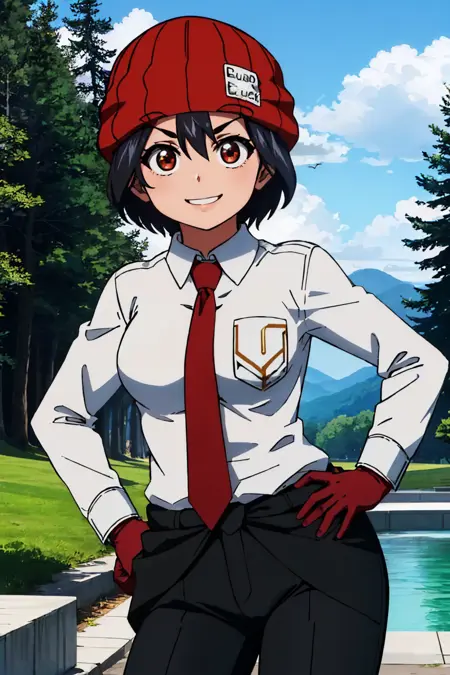 正装: 红色头饰、有领衬衫、白衬衫、手套、黑色长裤、腰间衣物