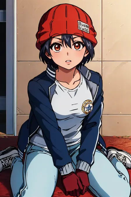 默认服装: 红色头饰、针织帽、夹克、白衬衫、手套、蓝色长裤