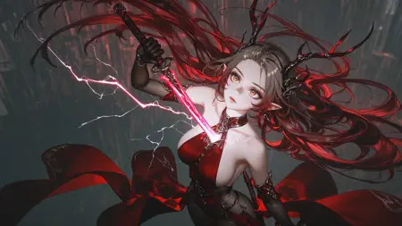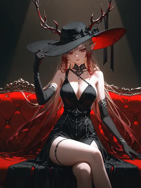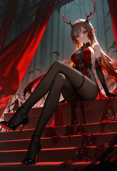 **Optional clothing tags衣服 :**yifuElide,Elide bare shoulders,Elide red sole,Elide black bodystocking,Elide bodysuit,Elide black long-sleeved gloves,Elide black high heels,large breasts,Elide pelvic curtain,Elide red dress,Elide sideboob,