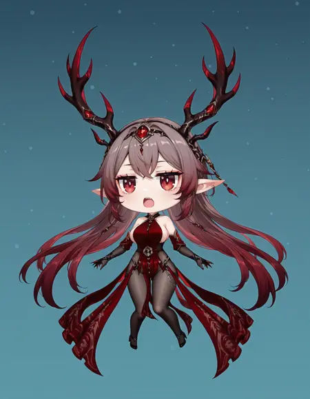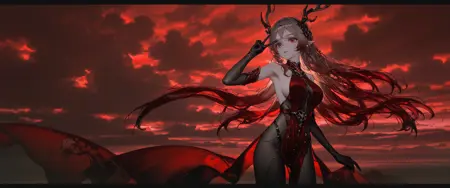 Tags标签标签: Elide,antlers,long hair,pointy ears,brown hair,gradient hair,multicolored hair,red hair,