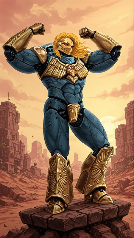 1boy, robot, blonde hair, helmet,