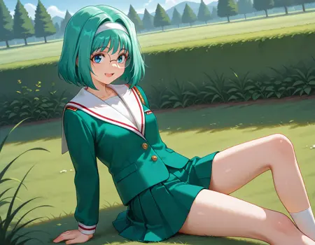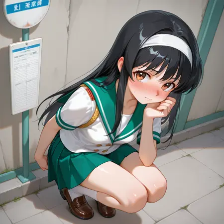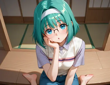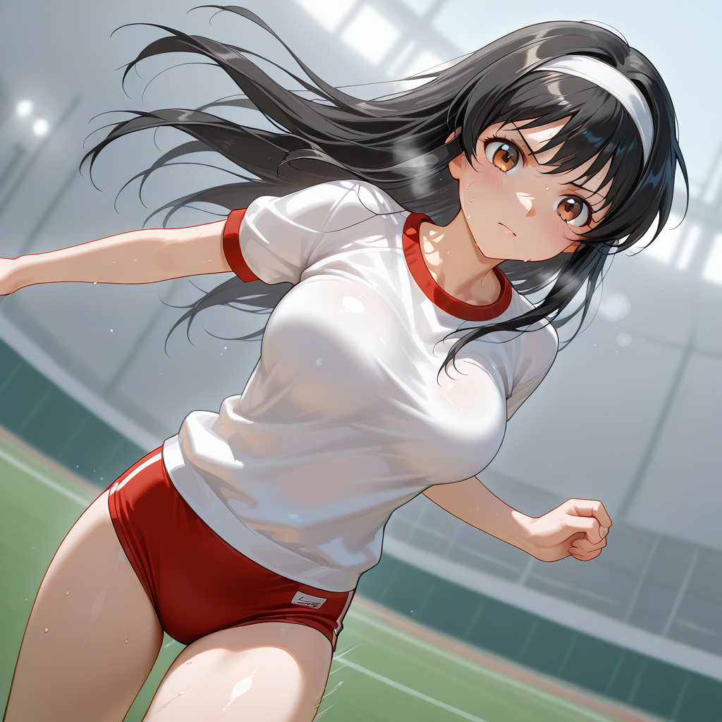 小夜子がブルマ以外で腿出しを着るとは思えなかったので、デニムスカートにしてますが、AIはやたらとデニムパンツ説を推してきました。