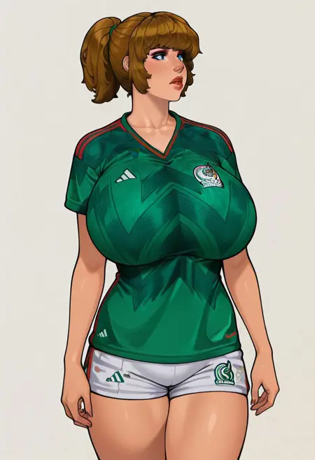 Mexico national football team,Official sports uniform. White shorts, matching shorts with red accents