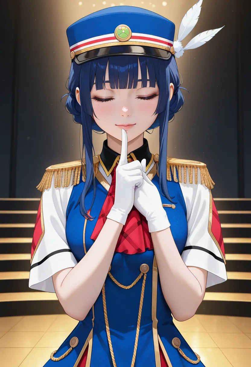 | 학습된 단어 | HPTkanancos, epaulettes, white gloves, black footwear, blue dress, short sleeves, gold trim, layered dress, aiguillette, red skirt, white shirt, black collar, red ascot, praid ascot, praid skirt, cross-laced footwear, knee boots,whistle복사됨! shako cap, blue headwear, hat feather, white feathers복사됨! |