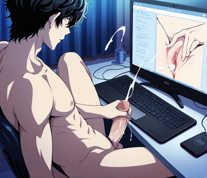 9. 1소년, 노트북 앞에서 자위, 앉아 있는 상태,