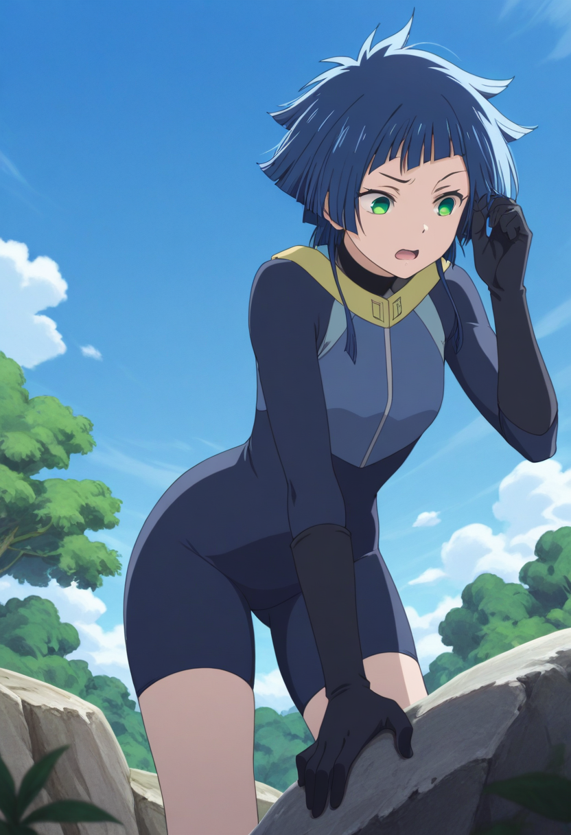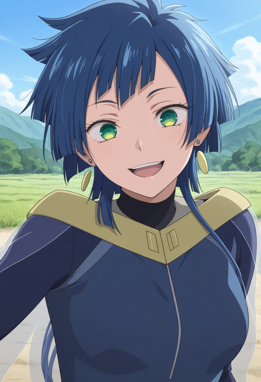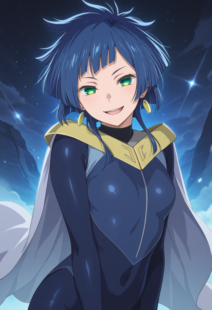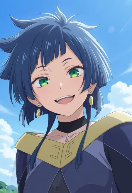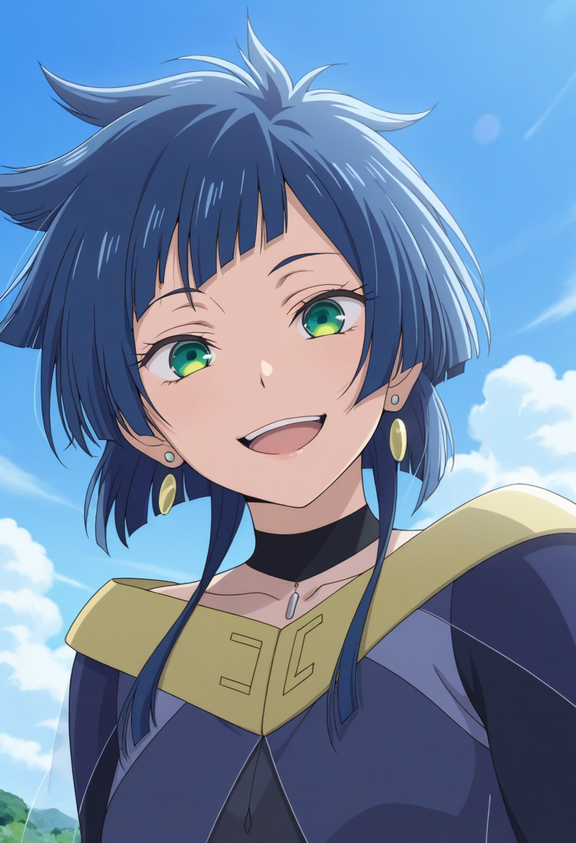 トリガーワード: karina (バスアメンがちファイター)、青髪、短髪、緑の目