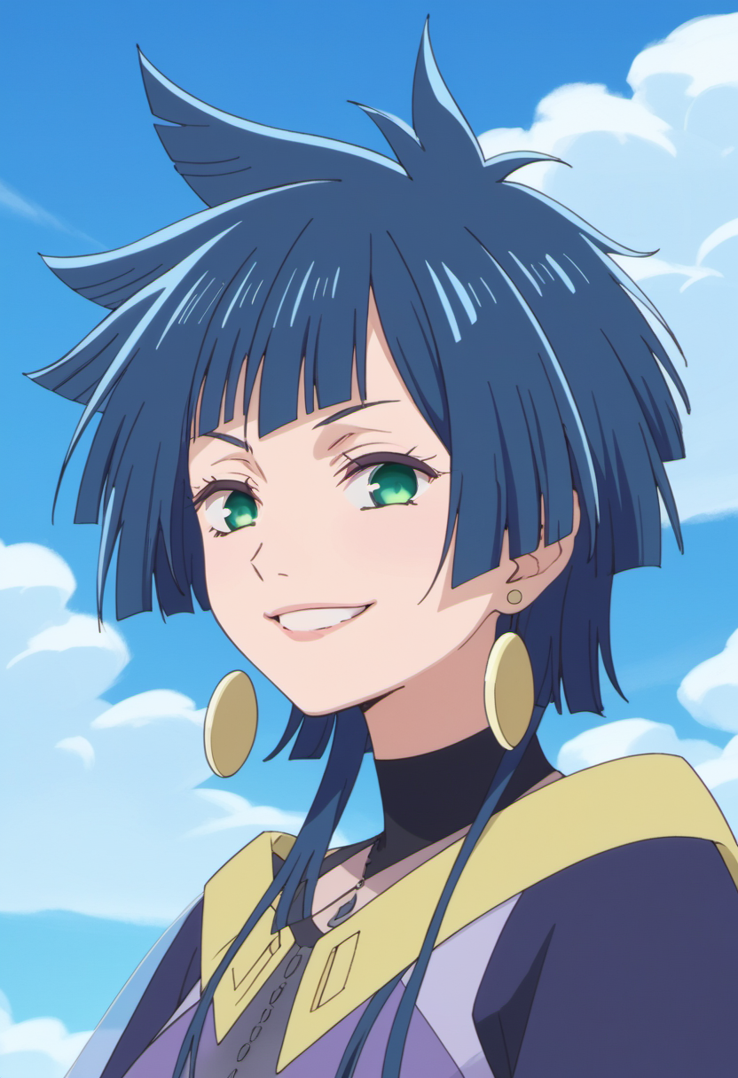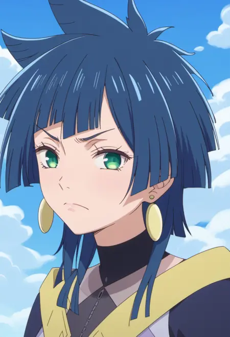 トリガー単語: karina (busamen gachi fighter)、青髪、短髪、緑の目