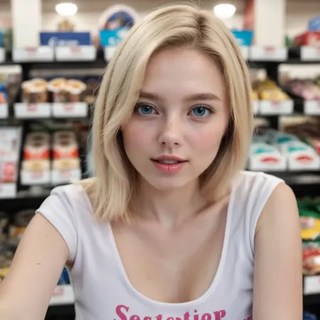 AI Girl GG1 - cute blonde girl charater, with blue eyes, small nose, cute face