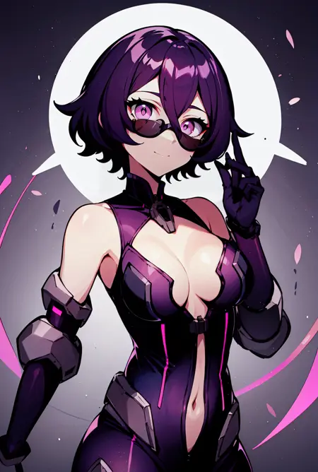**PS:You can use it as a character lora,suggest promt:**ripper-hairstyle, outfit-ripper, 1girl, solo, short hair, sunglasses, purple hair, looking at viewer, upper body,