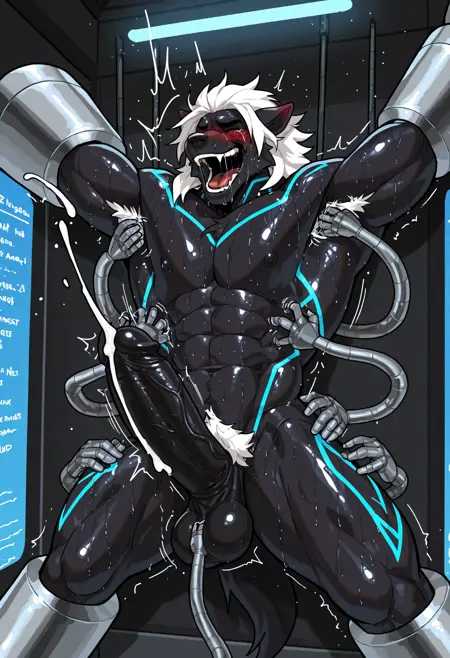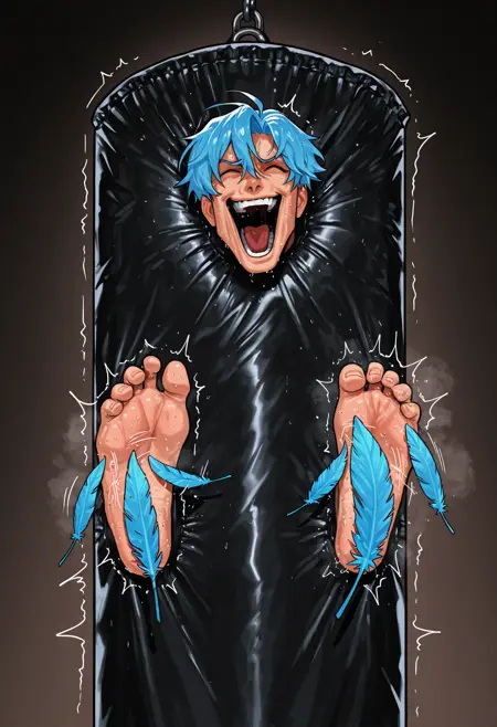 1boy/1girl 等,独个,卡在 {物体},{可选身体姿势,如“双腿向上”、“弯腰”、“跪姿”},{身体部位} 露出,{[可选] {颜色} 圆环} {其余描述}
