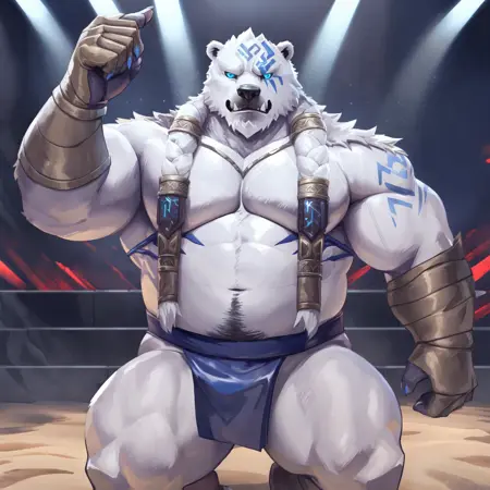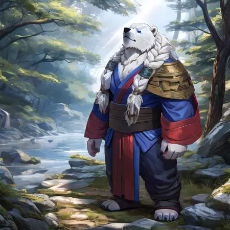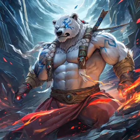 トリガーワード: volibear, 編み髪, 白い毛, 青い目, クマ,