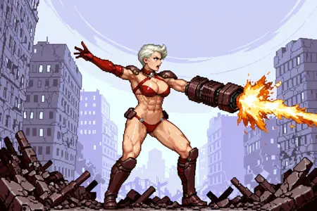 메탈 슬러그의 데스트라데. 조연이지만, 그녀의 머리카락과 근육, 가슴이 너무 좋아요. 저는 단순한 남자예요... 팔 캐논은 이미지가 별로 없어서 잘 안 훈련했어요.