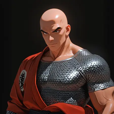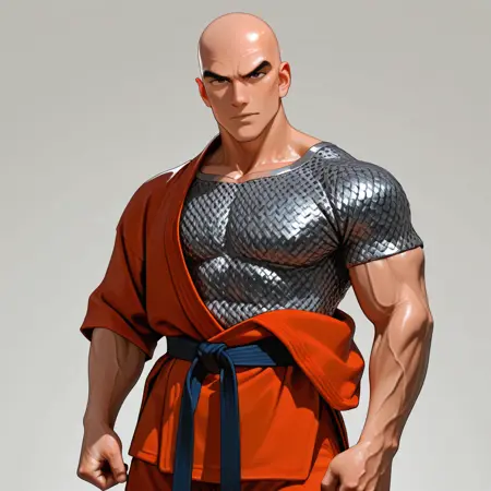 其他:请尝试使用短袖渔网装甲或短袖锁子甲,以正确生成内搭衣物。如果他的肤色不够黝黑,可考虑提示使用深色皮肤。