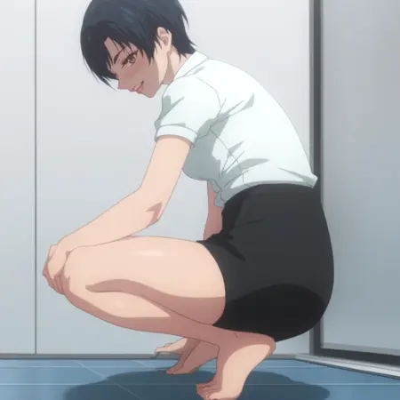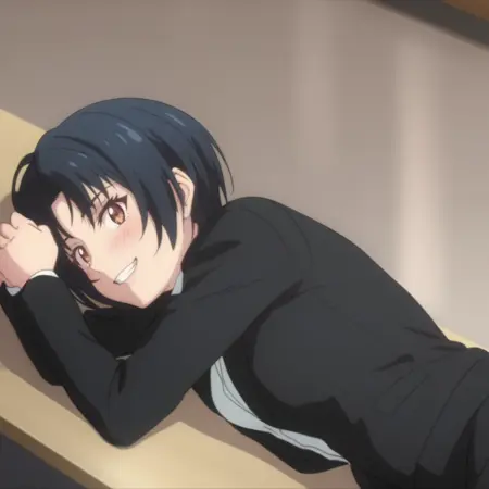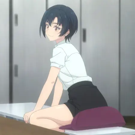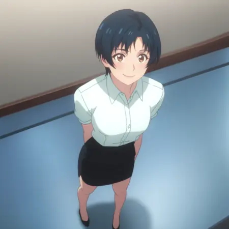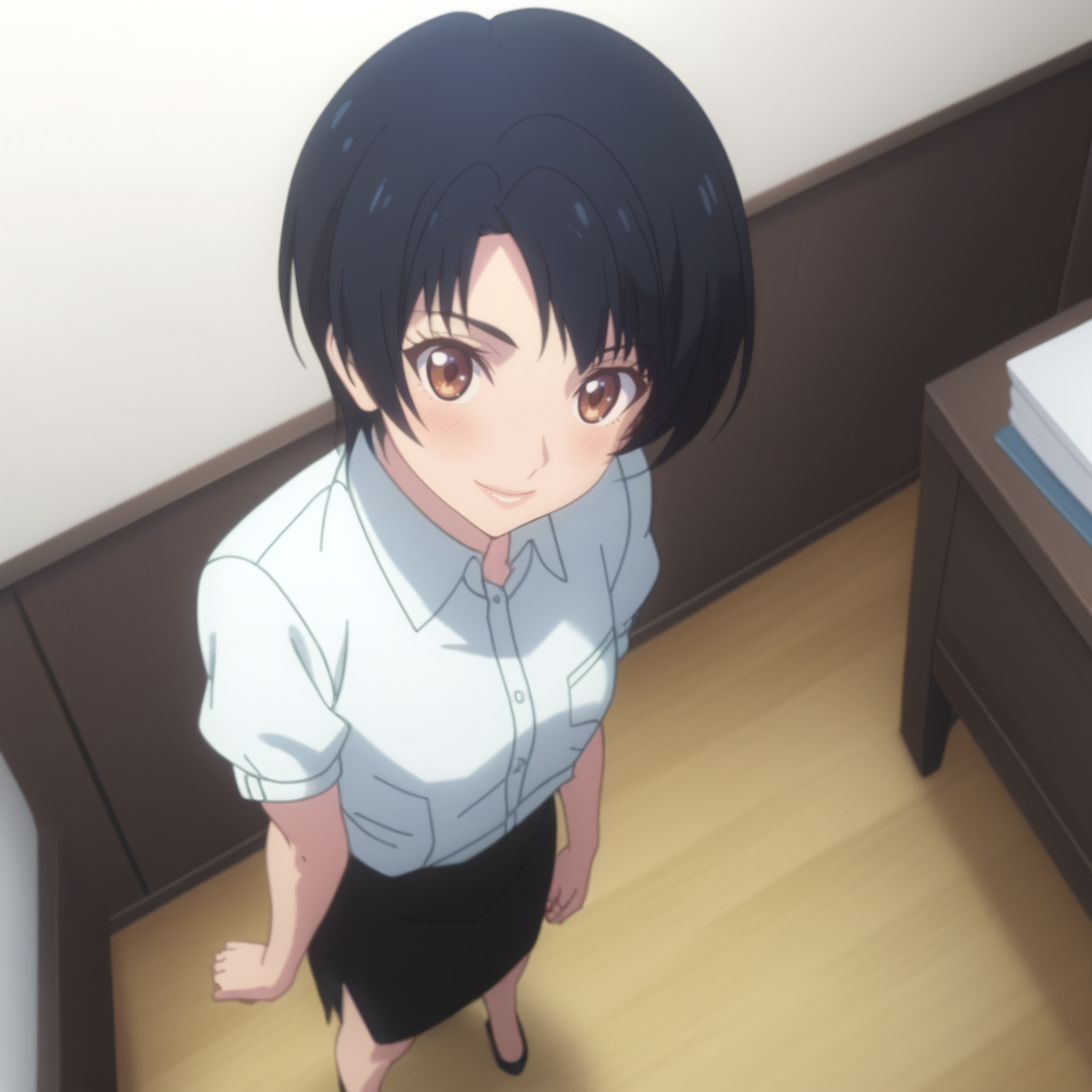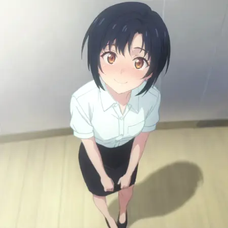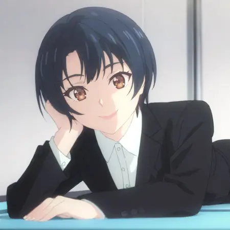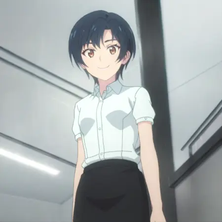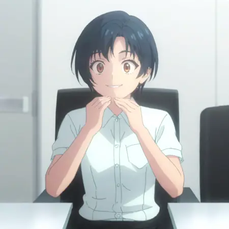 ShioneKozuki、茶色の目、黒髪、短い髪、