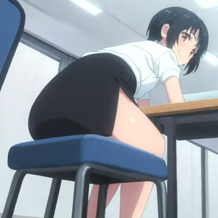 白シャツ、シャツカラー、ダーツシャツ、短い袖、黒スカート、ペンシルスカート、