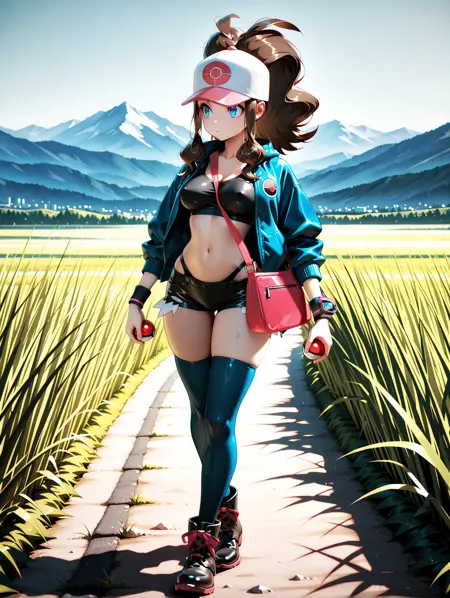 Hilda Prompts : 1girl, brown hair, long hair, blue eyes, medium breast, ponytail, high ponytail, sidelocks, eyelashes