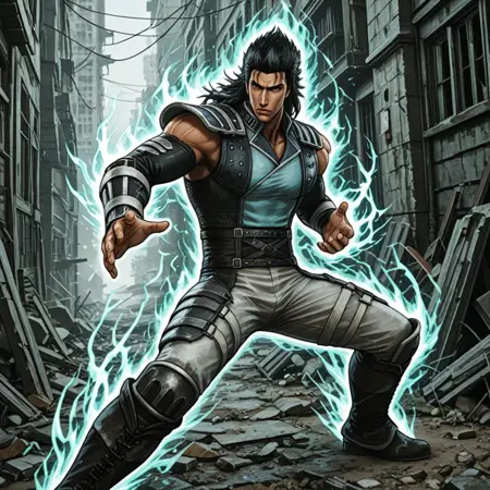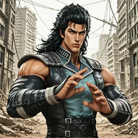 북두의 권에서, 의성의 운명을 뒤집어쓴 남두수조권 전승자 레이입니다.