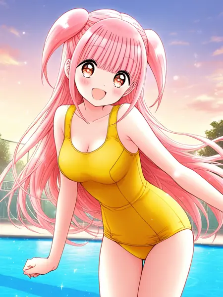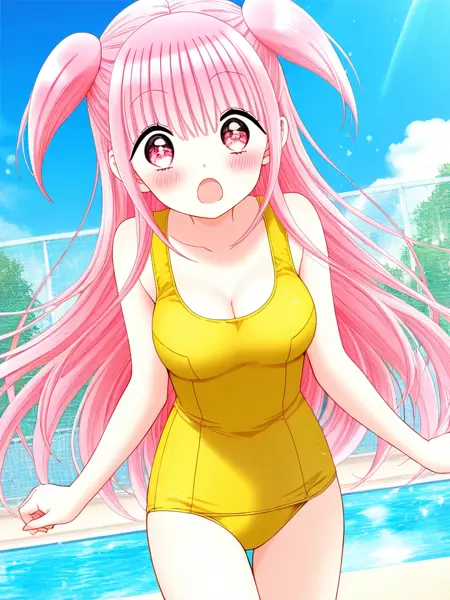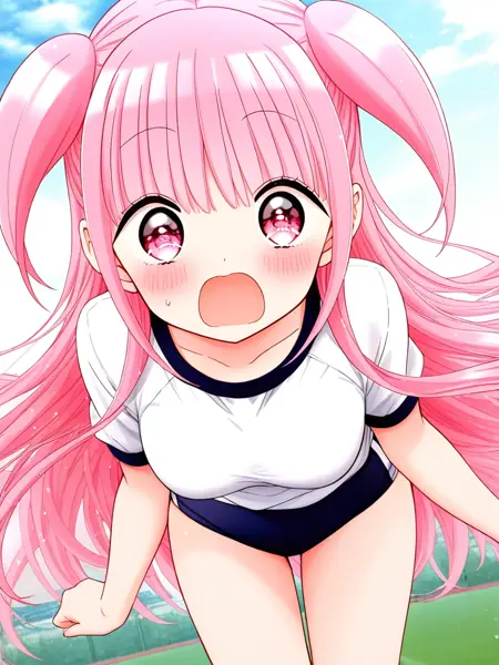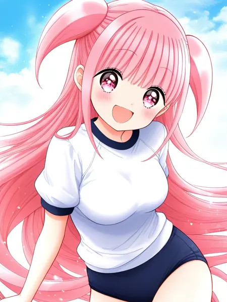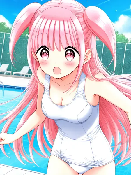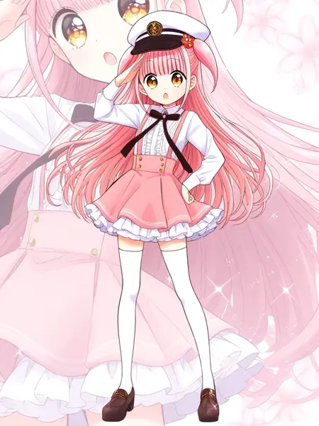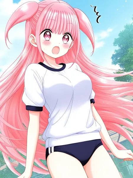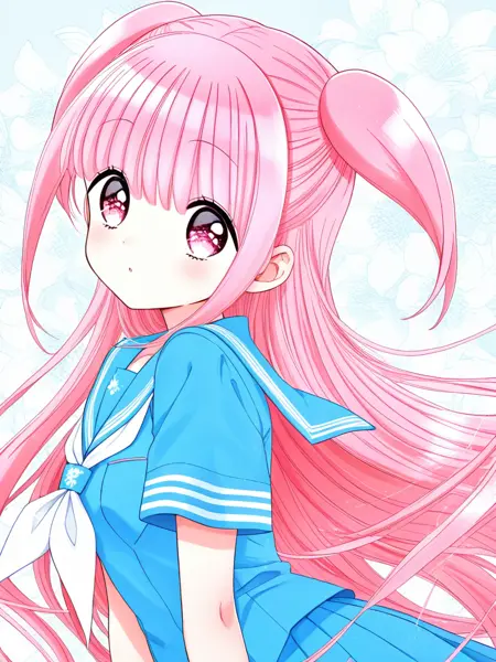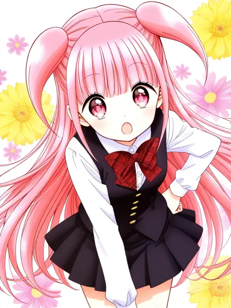 kokoro(shinri), 1girl, solo, very long hair, pink hair, two side up, bangs, small breasts, pink eyes,