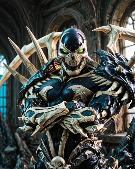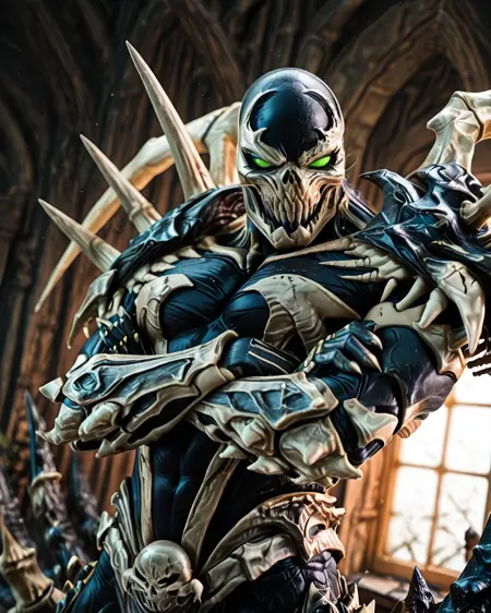 hellset1, hellset2, green eyes, black skin, armor, claws, spikes, bone exoskeleton, no human, monster,