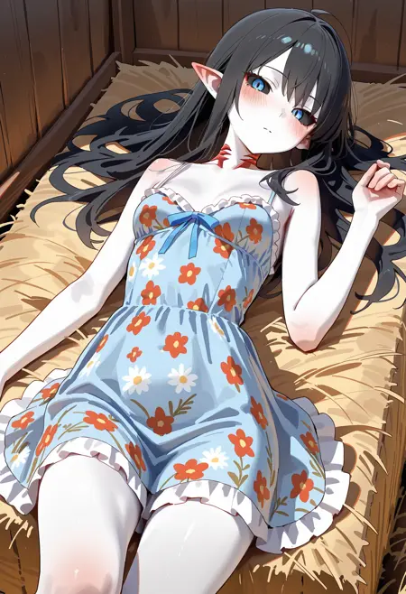 トリガーワード: 短いドレス、フリルのドレス、スパゲッティストラップ、非対称のドレス、フローラルプリント、