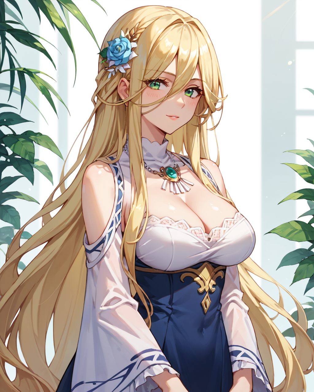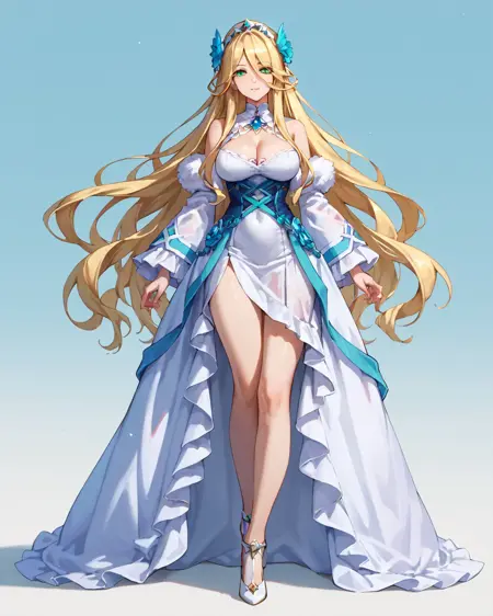 Marlefiss、金髪、長い髪、非常に長い髪、青緑色の目、1girl、ソロ、全身