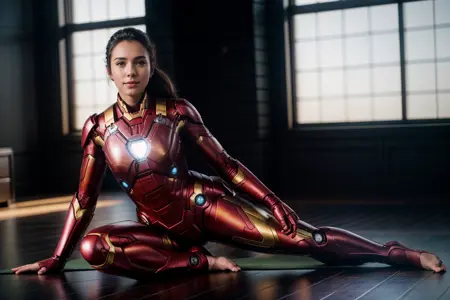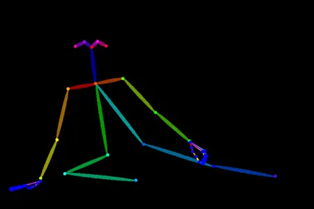 OpenPoseの骨格構造とプロンプト情報付きの例画像。